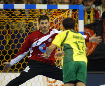 | WM 2007: GER-BRA: Henning Fritz. | WM 2007: GER-BRA: Florian Kehrmann, im Hintergrund Christian Zeitz. | WM 2007: GER-BRA: Christian Zeitz. | WM 2007: GER-BRA: Das deutsche Torhüterduo. | |||