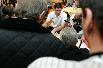 | WM 2007: DEN-HUN: Lars Krogh Jeppesen verfolgt das Spiel seines Teams in der Ostseehalle. | WM 2007: Spielfrei: Henning Fritz stellt sich den Fragen der Presse. | WM 2007: Spielfrei: Henning Fritz stellt sich den Fragen der Presse. | WM 2007: Spielfrei: Christian Zeitz im Hintergrund. | |||