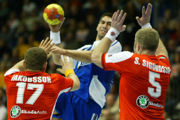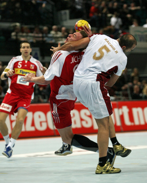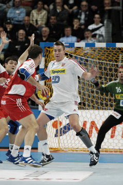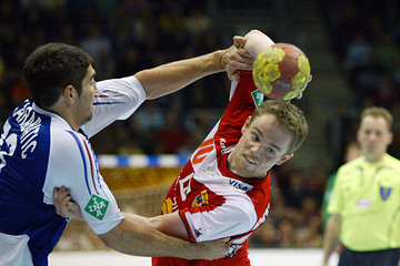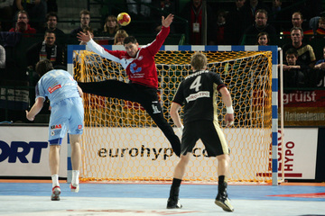 | WM 2007: GER-POL: Christian Zeitz. | WM 2007: GER-POL: Johannes Bitter und Henning Fritz. | WM 2007: NOR-DEN: Steinar Ege. | WM 2007: FRA-ISL: Karabatic gegen Gudjonsson. | |||