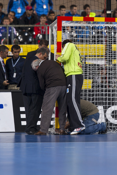 | WM 2013: GER-FRA. | WM 2013: GER-FRA. | WM 2013: GER-FRA: Das Tor musste wieder befestigt werden. | WM 2013: GER-FRA. | |||