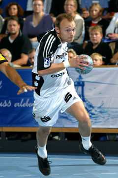 | Henrik Lundström. | Kollektiver Kieler Jubel - Nikola Karabatic, Henrik Lundström und Frode Hagen feiern den Pokalerfolg. | Henrik Lundström wird beim Tempogegenstoß von Lübbeckes Rolf Hermann attackiert. | Henrik Lundström. | |||