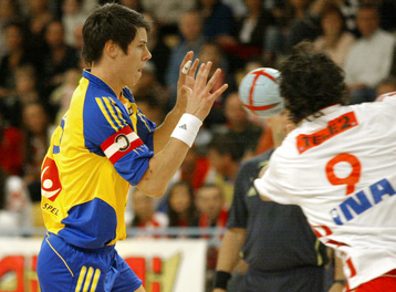 | Kim Andersson. | Spielszene. | Lövgren schießt. | Boldsen gegen Kim Andersson. | |||