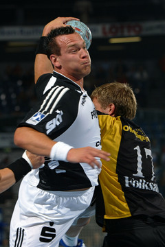 | Christian Zeitz. | Christian Zeitz wird beim Tempogegenstoß von Michal Zolotenko attackiert. | Christian Zeitz versucht, die Plocker Mauer zu durchbrechen. | Christian Zeitz. | |||