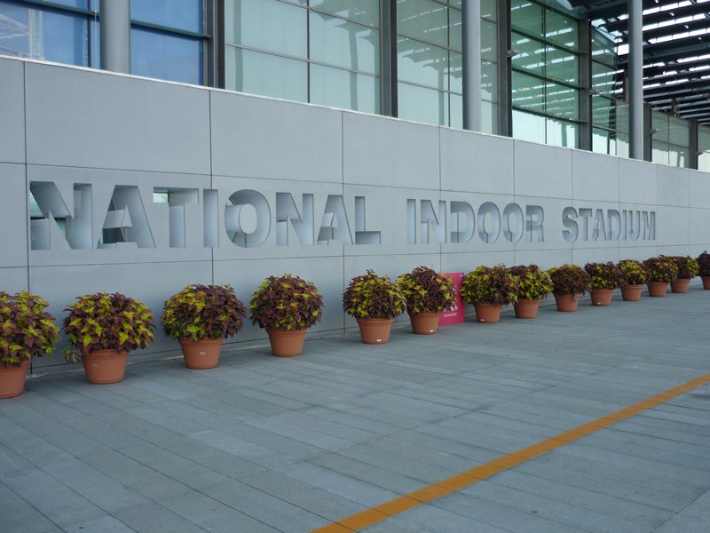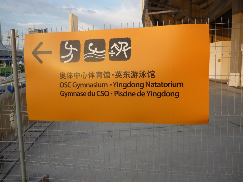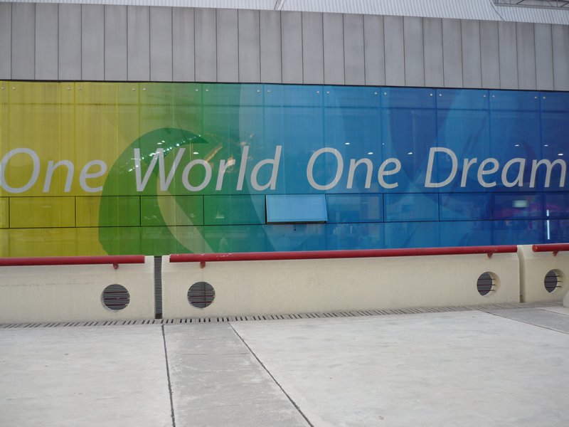 | Olympia 2008: Olympic Green - Westeingang. | Olympia 2008: Wegweiser zur Handballhalle. | Olympia 2008: "One world - one dream." | Olympia 2008: Eingang zur Handballhalle, links die polnischen Schiedsrichter Baum/Goralzcyk. | |||