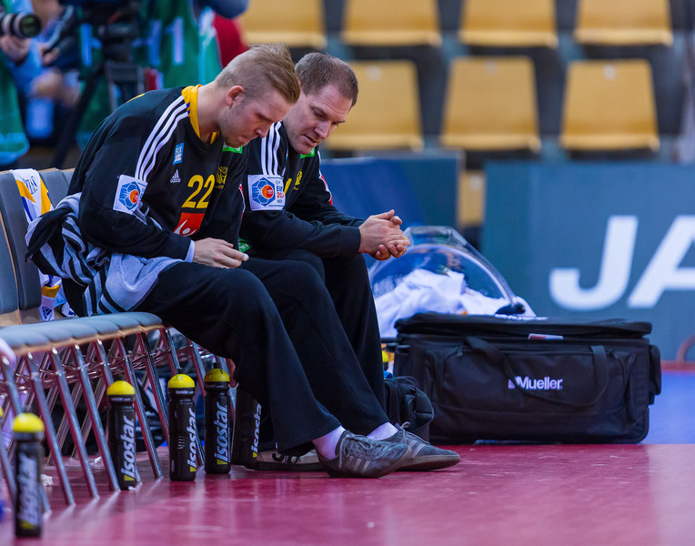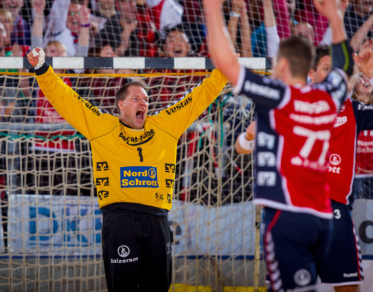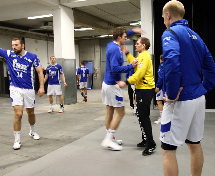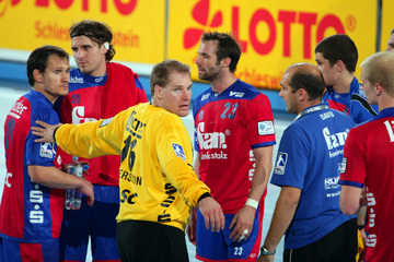 | Das THW-Torhüter-Duo. | Jubel beim THW. | Jubel beim THW. | Auszeit. | |||