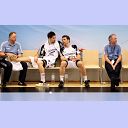 | Das Med-Team: Osteopath Jan Bock und die Physios Karsten Krannig, Dennis Missling und Uwe Brandenburg. | Das Med-Team: Osteopath Jan Bock und die Physios Karsten Krannig, Dennis Missling und Uwe Brandenburg. | Casey reicht Schnittchen. | Auszeit. | |||