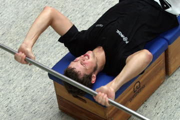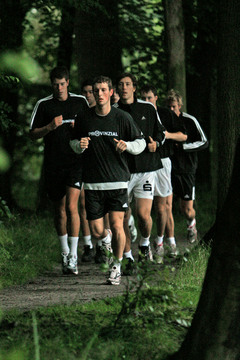 | Die Kieler Auswechselbank. | Autogrammkarte 2005/2006: Christoph Schindler. | Trainingslager 2005: Festes Ritual: Kurz nach sechs geht es zum morgendlichen Waldlauf rund um den Mühlenteich. | Trainingslager 2005: Der Name ist Programm: Christoph Schindler schindet sich beim Bauchmuskeltraining. | |||