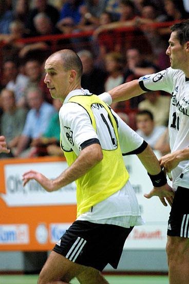 | Hans Lindberg, im Hintergrund Davor Dominikovic. | Davor Dominikovic gegen Rene Toft Hansen. | Gudjon Valur Sigurdsson. | THW im Angriff. | |||
