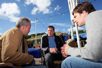 | Golfen 2008: THW-Trainer Alfred Gislason im Gespräch mit Mannschaftsarzt Dr. Detlev Brandecker und Marcus Ahlm. | Golfen 2008: THW-Trainer Alfred Gislason im Gespräch mit Mannschaftsarzt Dr. Detlev Brandecker und Marcus Ahlm. | Meister! | Auch Dr. Brandecker wurde nicht verschont. | |||