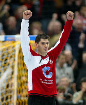 | Henning Fritz und Slawomir Szmal. | Henning Fritz. | Nationalmannschaft-Autogrammkarte Henning Fritz 2008. | Ahlm gegen Fritz. | |||