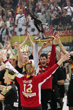 | Pokalsieger! | Pokalsieger! | Ehrung für die Weltmeister. | Henning Fritz musste verletzt zusehen. | |||