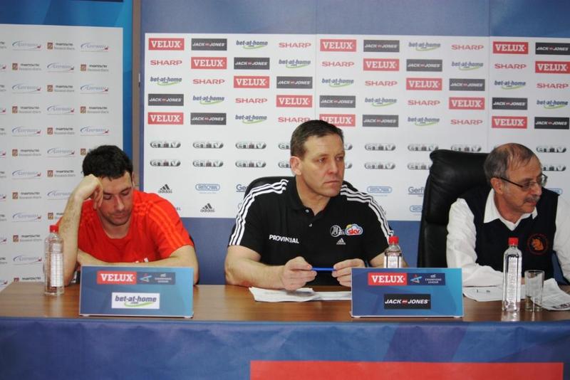 | Pressekonferenz zum Lufthansa-Final-Four. | Alfred Gislason. | Michael Roth und Alfred Gislason. | Alfred Gislason. | |||