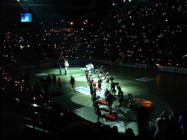 | Meister! | Vor dem Anwurf. | THW-Fans. | Wieder tolle Stimmung in Kiel. | |||