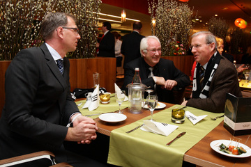 | Business-Lounge-Eröffnung: Die Architekten Robert Stüer (links) und Knud Schnittger unterhalten sich mit dem ehemaligen schleswig-holsteinischen Wirtschaftsminister Dietrich Austermann. | Business-Lounge-Eröffnung. | Business-Lounge-Eröffnung: Der schleswig-holsteinische Ministerpräsident Peter-Harry Carstensen und THW-Gesellschafter Gerd Lütje. | Business-Lounge-Eröffnung. | |||