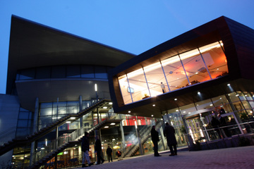 | Gleich geht's los. | Die neue Videowall in der Halle. | Die "neue" Ostseehalle. | Die Vorderfront. | |||