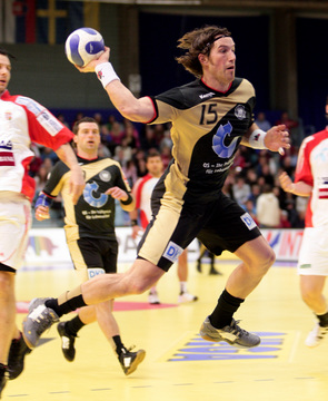 | EM 2008: GER-FRA: Torsten Jansen und Klimovets gegen Karabatic. | EM 2008: GER-FRA: Torsten Jansen. | EM 2008: GER-ISL: Dominik Klein und Torsten Jansen | EM 2008: ESP-GER: Torsten Jansen. | |||