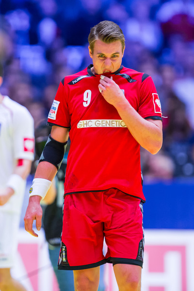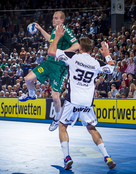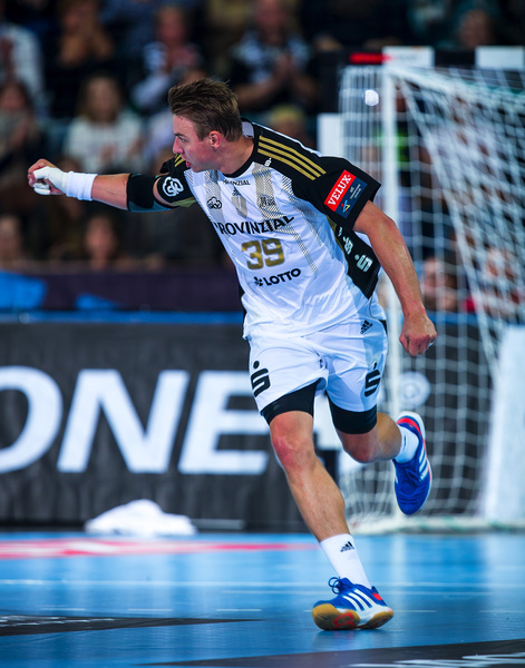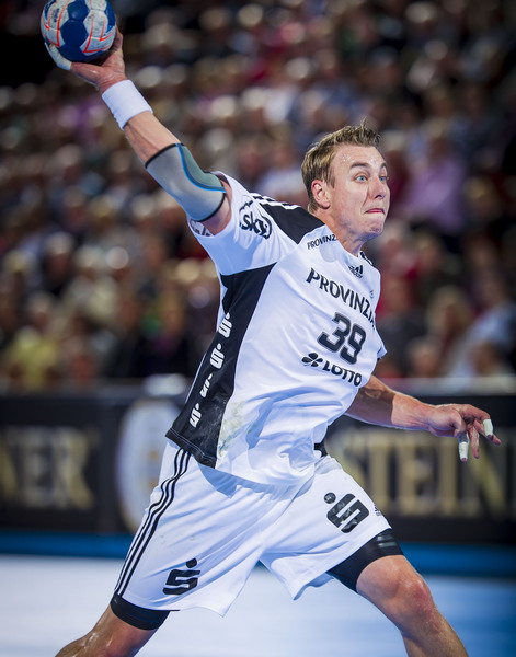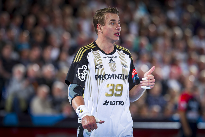 | Die Bank. | Pokalsieger! Christian Sprenger und Filip Jicha. | Pokalsieger! | Julian Poltrock behandelt Magnus Landin Jacobsen. | |||