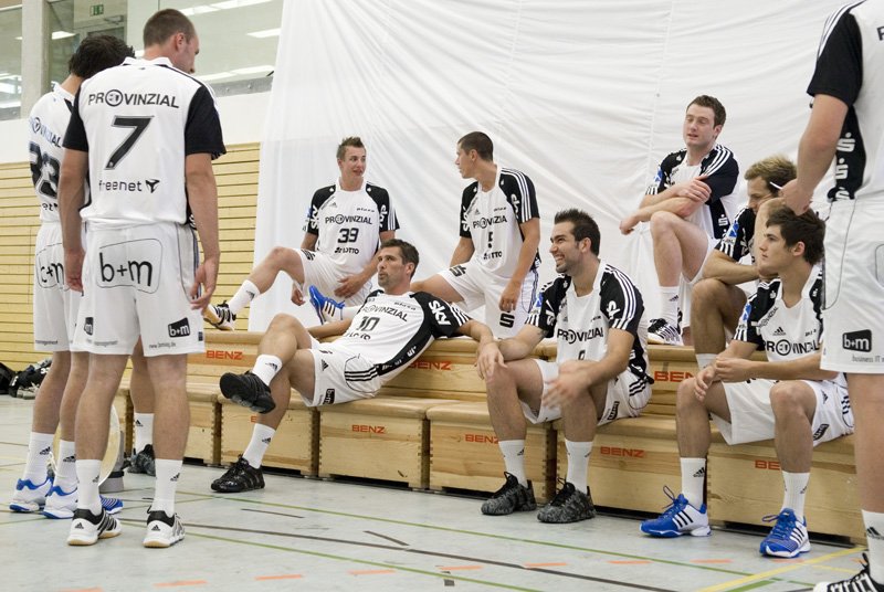| Alfred Gislason zwischen Tim Philip Jurgeleit (vorn) und Hendrik Pekeler (hinten). | Tim Philip Jurgeleit. | Die THW-Neuzugänge. | Die "Neuen" des THW. | |||