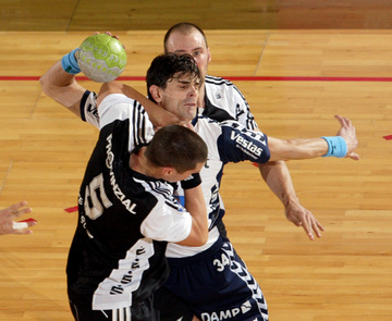 | Alen Muratovic wird gestoppt. | Vid Kavticnik. | Jubel nach dem Sieg in Flensburg. | Vid Kavticnik. | |||