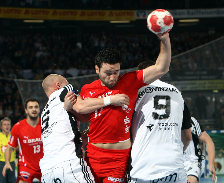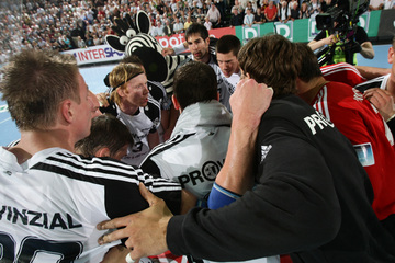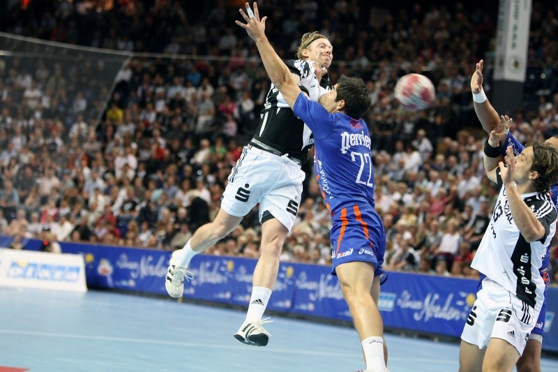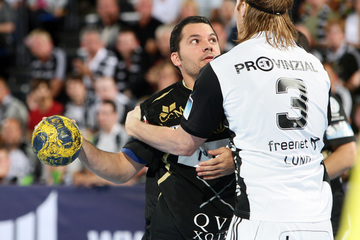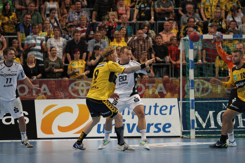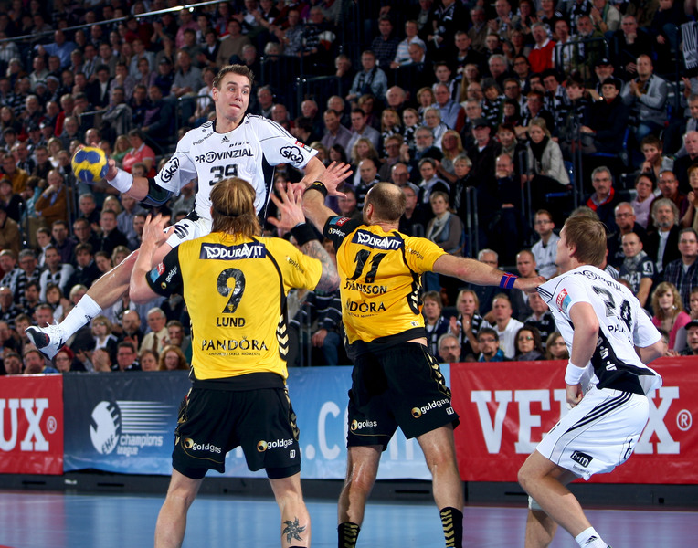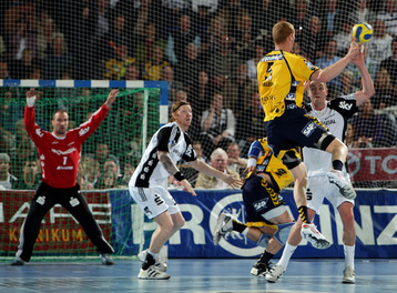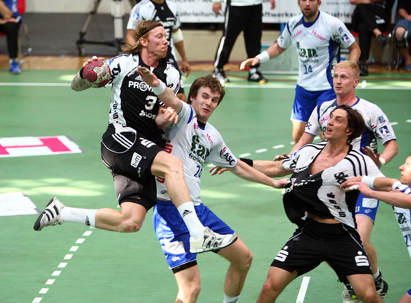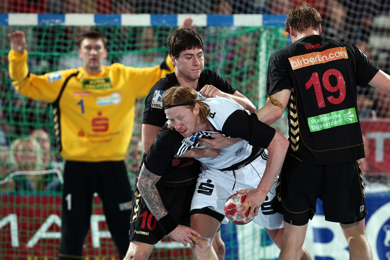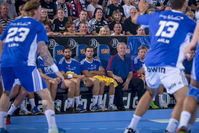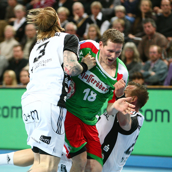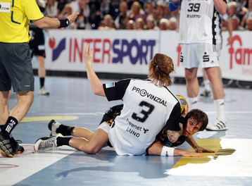 | Börge Lund muss Gudjon Valur Sigurdsson stoppen. | Börge Lund. | Börge Lund. | Besprechung. | |||