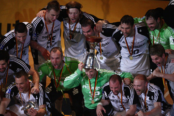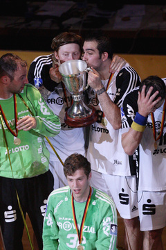 | Jubel nach dem Sieg. | Abwehrarbeit. | Pokalsieger 2009! | Pokalsieger 2009! | |||