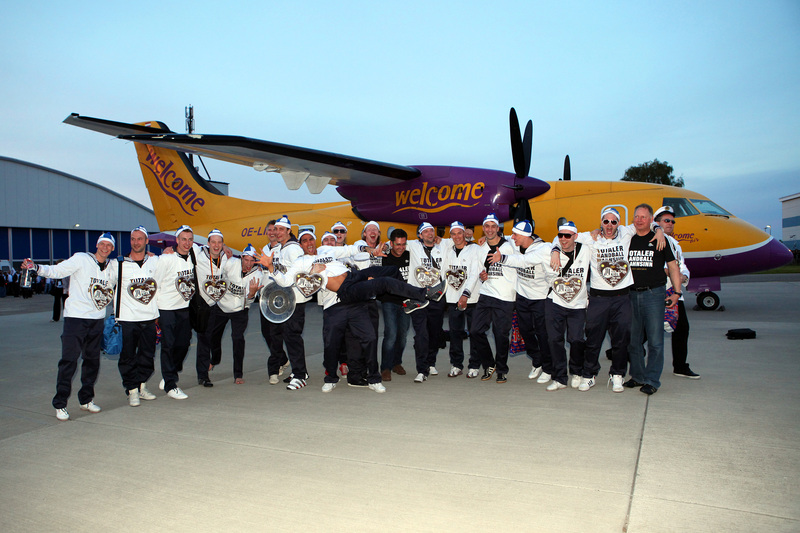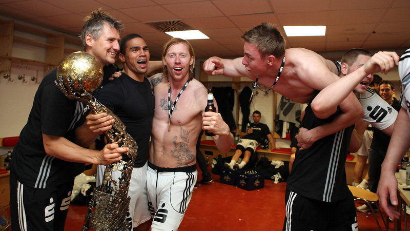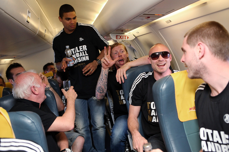 | Deutscher Meister 2010! | Deutscher Meister 2010! | Sport1-Moderatorin Annett Sattler wurde von Daniel Narcisse getauft. | Auf zum Flughafen! | |||