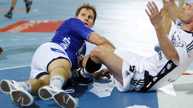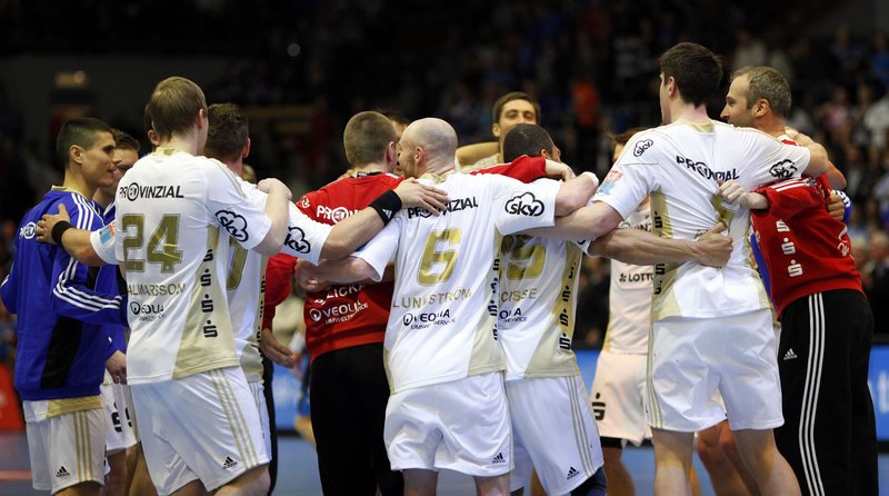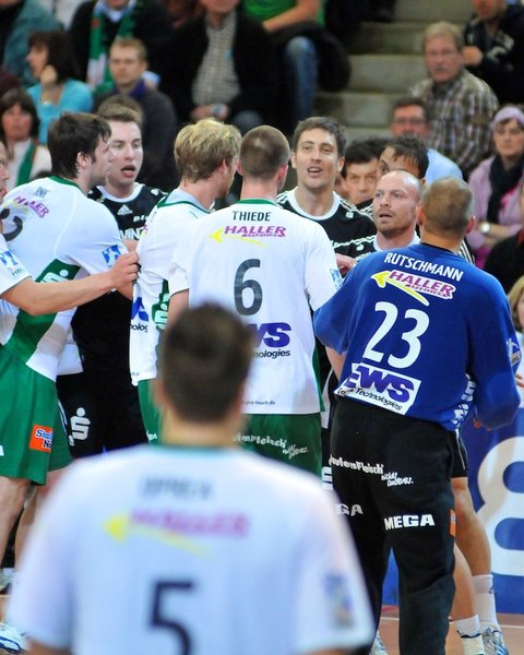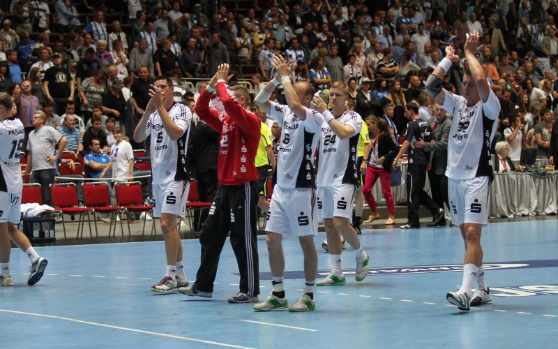 | Die Kieler Bank. | Aron Palmarsson und Henrik Lundström. | Spielszene. | Henrik Lundström. | |||