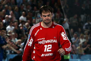 | Bruno Martini wird von Thierry Omeyer in Melsdorf begrüßt. | Alfred Gislason begrüßt Bruno Martini zum ersten Training. | Alfred Gislason begrüßt Bruno Martini zum ersten Training. | Stefan Lövgren begrüßt Bruno Martini zum ersten Training. | |||