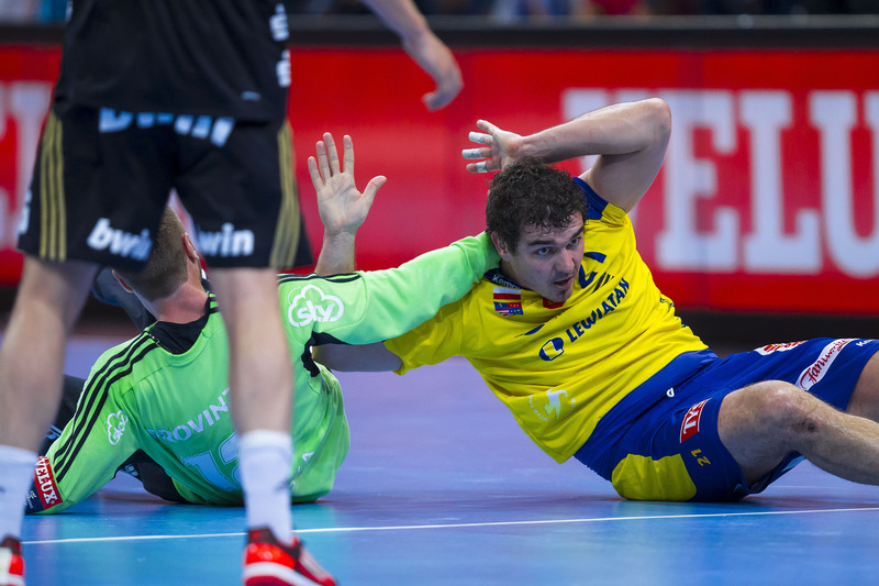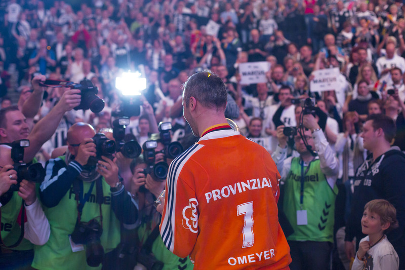 | Thierry Omeyer. | Enttäuschung. | Fotoshooting für das VELUX EHF Champions League Final4. | Filip Jicha. | |||