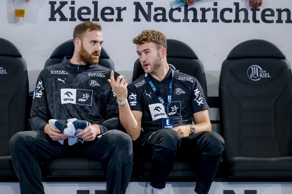 | Andreas Wolff und Gonzalo Pérez de Vargas. | Gonzalo Pérez de Vargas - Porträt 2025/2026. | Gonzalo Pérez de Vargas und Fernando Sanz-Lopez. | Mattias Andersson und Gonzalo Pérez de Vargas. | |||