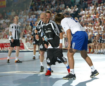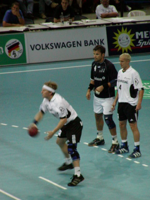 | Johan Pettersson. | Porträt 2003/2004 Johan Pettersson. | Handball-Bundesliga-Cup 2003. | Handball-Bundesliga-Cup 2003: Demetrio Lozano - im Hintergrund Pungartnik und Preiß. | |||