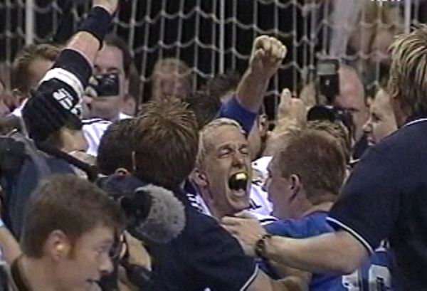 | THW wird in Flensburg Meister: Jubel nach dem Abpfiff. | THW wird in Flensburg Meister: Jubel mit der Schale. | THW wird in Flensburg Meister: Jubel mit der Schale. | EHF-Pokal-Finale 2002, Rückspiel: Johan läßt sichs gut gehen. | |||