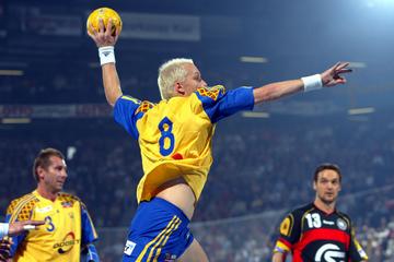 | Johan Pettersson. | Johan Pettersson beim Strafwurf. | Schwedisches Doppel: Tischtennis-Star Jan-Ove Waldner (rechts) und Handball-Star Johan Pettersson (links, Profi des THW Kiel). | Schwedisches Doppel: Tischtennis-Star Jan-Ove Waldner (rechts) und Handball-Star Johan Pettersson (links, Profi des THW Kiel). | |||