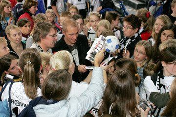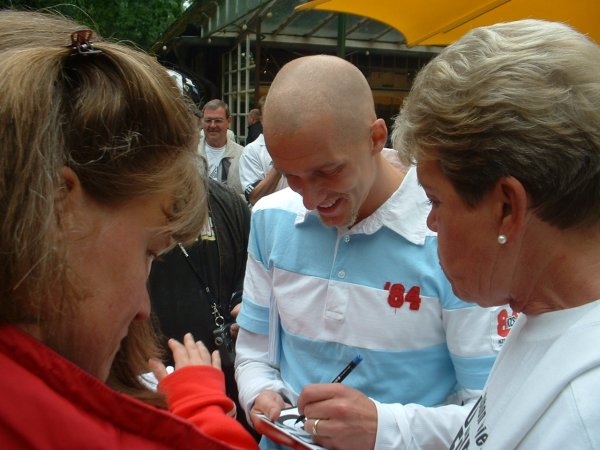 | Pittis Abschied: Johan Petterssondreht eine Runde durch die Halle und klatscht mit den Fans ab. Auch für ihn war es das letzte Spiel in der Ostseehalle. | Pittis Abschied: Johan Pettersson gibt Pitti einen Abschiedskuss. | Pittis Abschied: Mitspieler Johan Petersson singt "Pitti" ein Ständchen. | Forstbaumschule 2005: Johan Pettersson mit neuer Frisur. | |||