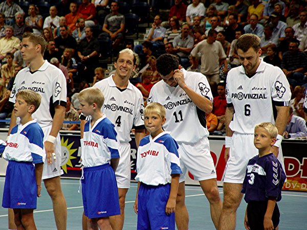 | Von rechts: Johan, Sohn Filip, Frau Sofia, Tochter Signe; Sebastian, Freundin Hanne; Martin, Freundin Jenny, Sohn Arvid; Roman mit Frau Iris. | Abschied von der Kieler Ostseehalle. | Abschied von der Kieler Ostseehalle: Sebastian Preiß mit Freundin Hanne. | Abschied von der Kieler Ostseehalle. | |||