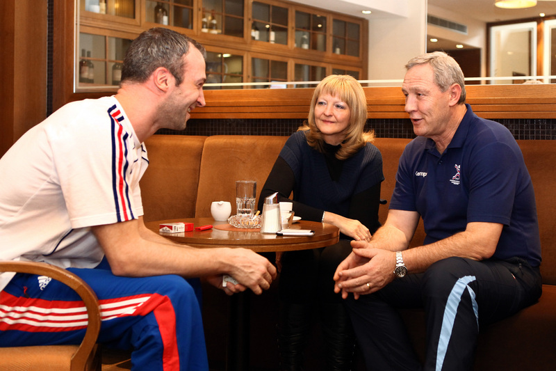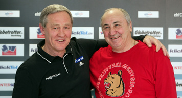 | Omeyer und Serdarusic. | Noka Serdarusic und Vladimir Maximov. | Pressekonferenz. | Omeyer und Serdarusic. | |||