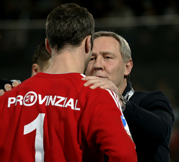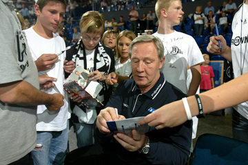 | Torhüterbesprechung. | Andersson, Fritz und Serdarusic. | Noka Serdarusic mit dem Pott, im Hintergrund Ex-OB Norbert Gansel. | Noka Serdarusic mit dem Pott, im Hintergrund Ex-OB Norbert Gansel. | |||