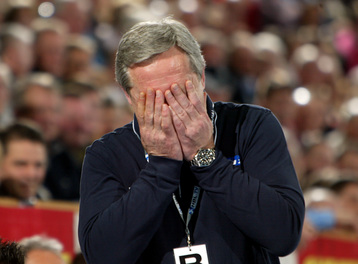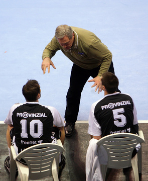 | Nach dem Spiel entspannt auf der Bank. | Nach dem Spiel entspannt auf der Bank. | Der Coach. | Auszeit. | |||