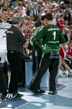 | Jubel über den 14. Titel. | Noka Serdarusic. | Serdarusic und Dujshebaev. | Ankunft an der Halle. | |||