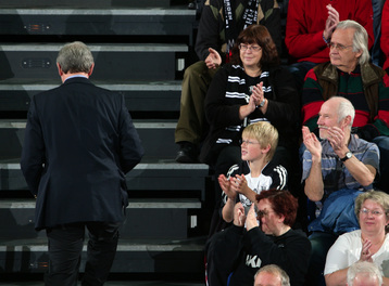 | Noka und Mirjana Serdarusic auf der Tribüne. | Noka und Mirjana Serdarusic. | Kiels Oberbürgermeisterin Angelika Volquartz und THW-Trainer Noka Serdarusic. | Kiels Stadtpräsident Rainer Tschorn, Kiels Oberbürgermeisterin Angelika Volquartz, THW-Trainer Noka Serdarusic und Staatssekretär Dr. Arne Wulff. | |||
