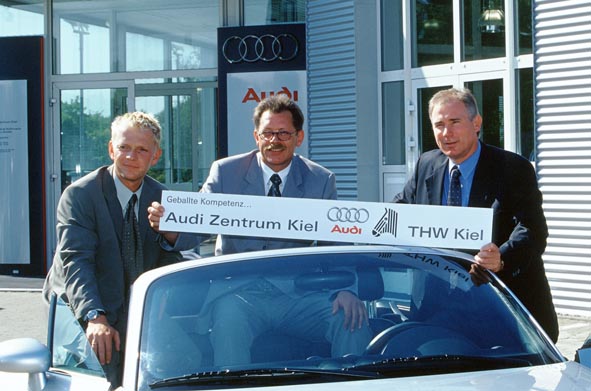 | Thorsten Storm und Uwe Schwenker präsentieren das Audi Zentrum Kiel als neuen Partner | Don Wislander und der Hitman Theo. | |||||