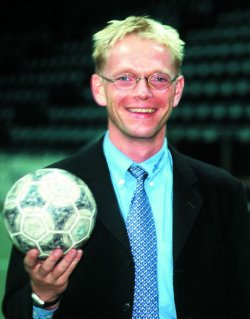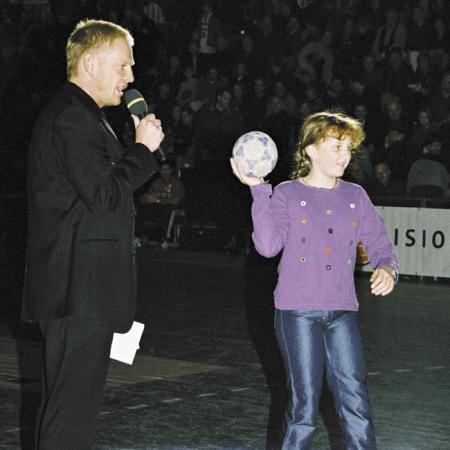 | Marketingleiter Thorsten Storm bei der Moderation der Pre-Match-Show. | Thorsten Storm mit einem jungen Zebra-Fan beim Torwandwerfen. | THW-Marketingleiter Thorsten Storm. | Thorsten Storm in aktiven Handballer-Zeiten. | |||