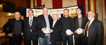 | Final-Four-2009-Auslosung. | Final-Four-2009-Auslosung: RNL-Manager Thorsten Storm. | Die Löwen-Bank. | SG-Manager Torsten Storm. | |||