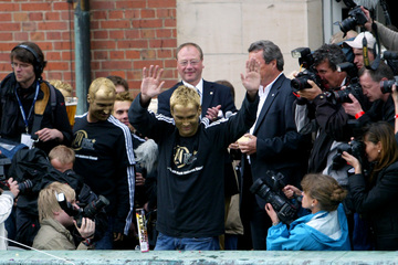 | Meister! | Meister! | Der Meister und Pokalsieger auf dem Balkon. | Der Meister und Pokalsieger auf dem Balkon. | |||