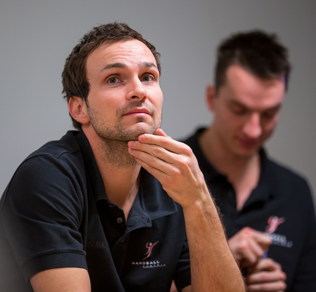 | Johan Rohwer und Viktor Szilagyi. | Harald Reinkind. | Saisoneröffnungspressekonferenz. | Saisoneröffnungspressekonferenz. | |||