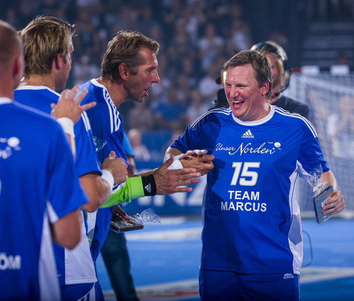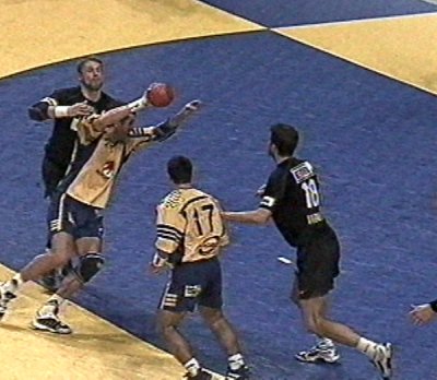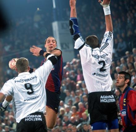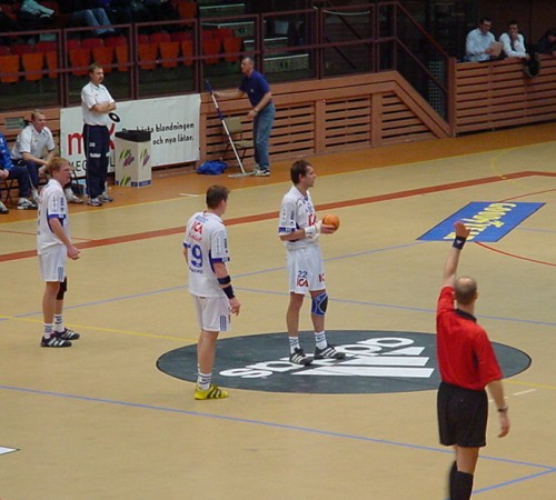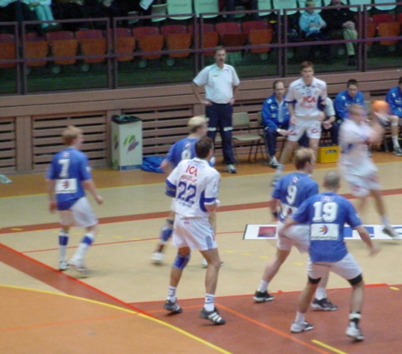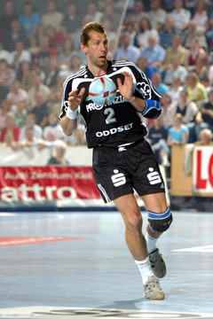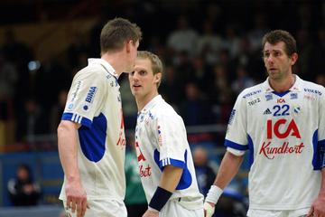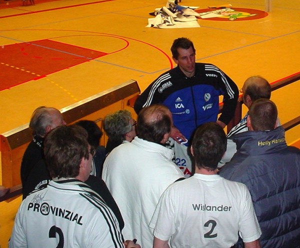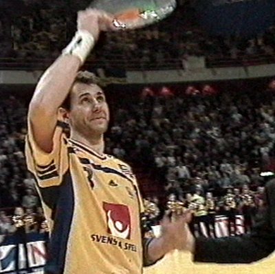| Magnus Wislander eröffnet den Partille-Cup 2001. | Magnus Wislander. | Masip paßt, rechts Wislander. | Ortega wirft, rechts Olsson und Wislander. | |||