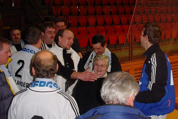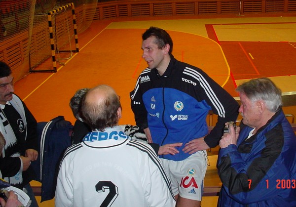 | EHF-Pokal-Finale 2002, Rückspiel: "Nur noch sechs Spiele. Ich bin ein bißchen traurig" | EHF-Pokal-Finale 2002, Rückspiel: Empfang am Vereinsheim - Wislander mit Provinzial-Vorstandsvorsitzendem Reime. | EHF-Pokal-Finale 2002, Rückspiel: Empfang am Vereinsheim. | Wislander, Roggisch, Petersen. | |||