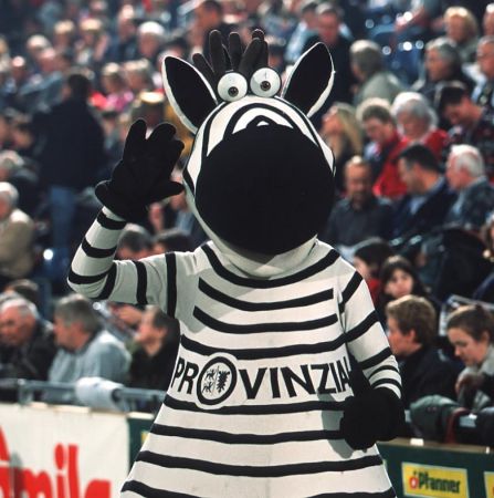 KurzporträtHein Daddel tauchte das erste mal am 26.8.1999 in der Öffentlichkeit auf. Gemeinsam mit dem Hauptsponsor Provinzial ließ der THW Kiel die Zebra-Figur in der Filmpuppen-Werkstatt von Peter Röders, dem Vater von dem Raben Rudi aus der Fernsehsendung Siebenstein, Herrn Bödefeld aus der Sesamstraße und auch Karlchen von RTL plus, in Idstedt entwickeln und herstellen. Anfänglichen zeichnerischen Entwürfen folgte bald ein erstes geformtes Modell. Nach vielen kleinen Veränderungen erblickte die Figur aus PU-Schaum letztendlich pünktlich zur Saisoneröffnung im August 1998 das Licht der Welt.Einzig der Name des drolligen Stimmungsmachers war für einige Wochen ungewiß. Eine Abstimmung unter der THW-Anhängerschar brachte jedoch Aufschluss und der "Neue" wurde in Anlehnung an das große Kieler Handball-Idol Hein Dahlinger auf den Namen "Hein Daddel" getauft. Weitere Informationen zu Hein Daddel... (10.05.2000/10.09.2002) |