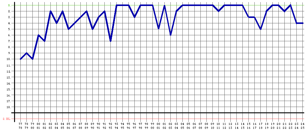 | 99/00 | 5,0 Mio. DM plus Einnahmen aus dem Europapokal |
