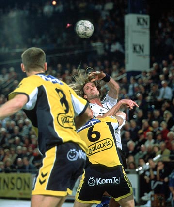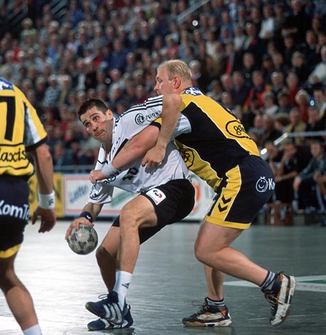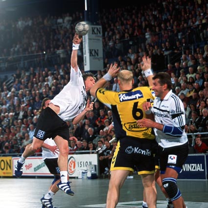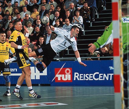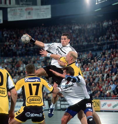 | Die Schweden im Schwartauer Getümmel. | Stefan Lövgren - schwer zu stoppen. | Niko überrascht Bad Schwartau aus dem Rückraum. | Nikolaj Jacobsen - ein eiskalter SIebenmeterschütze. | |||